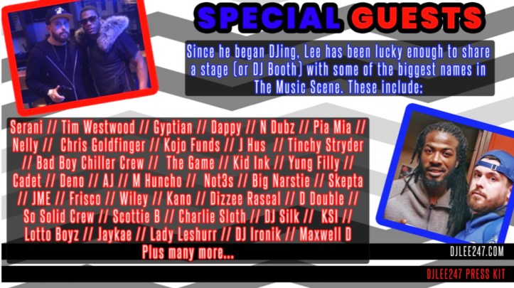 Electronic Press Kit To receive this Electronic Press Kit via email, please request a copy by clicking Bookings@DJLee247.com